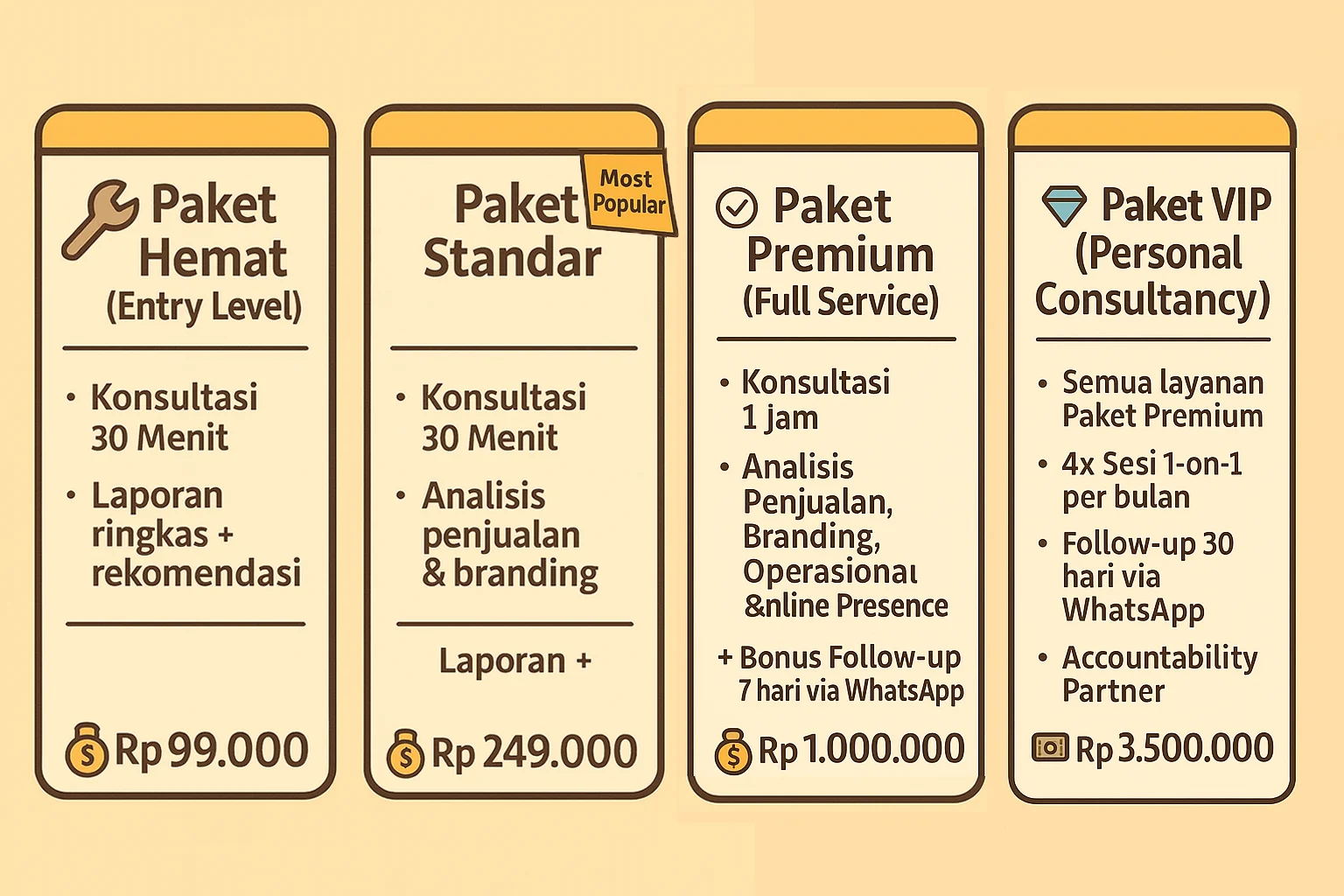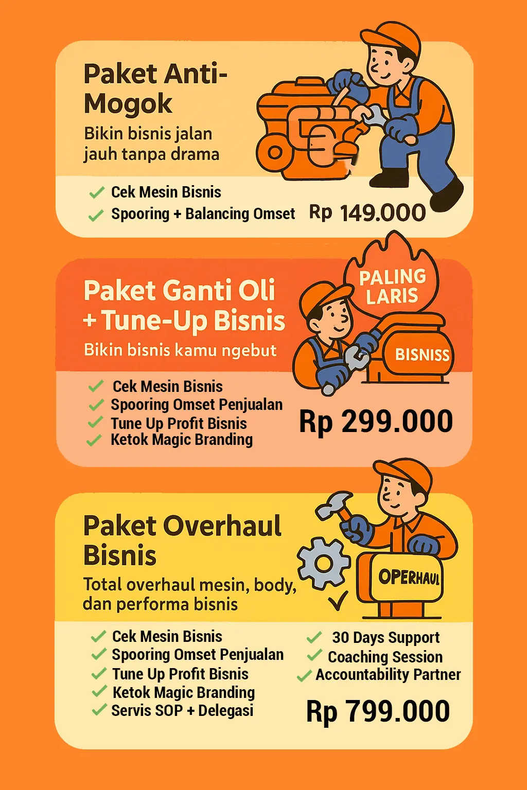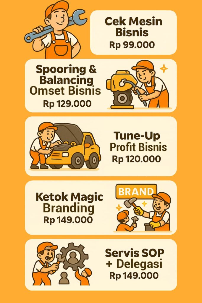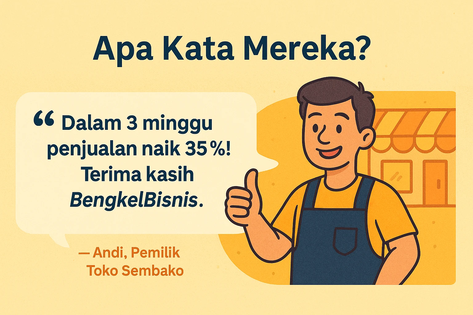 Di BengkelBisnis, kami percaya setiap masalah punya solusi yang tepat, asalkan ditemukan dari akar penyebabnya. Dengan pendekatan langsung dan tanpa basa-basi, kami mendiagnosis tantangan bisnis Anda, memberikan strategi yang jelas, dan membantu menerapkannya agar hasilnya terasa nyata. Tujuannya sederhana: membuat bisnis Anda lebih rapi, lebih efisien, dan siap bersaing di level berikutnya.